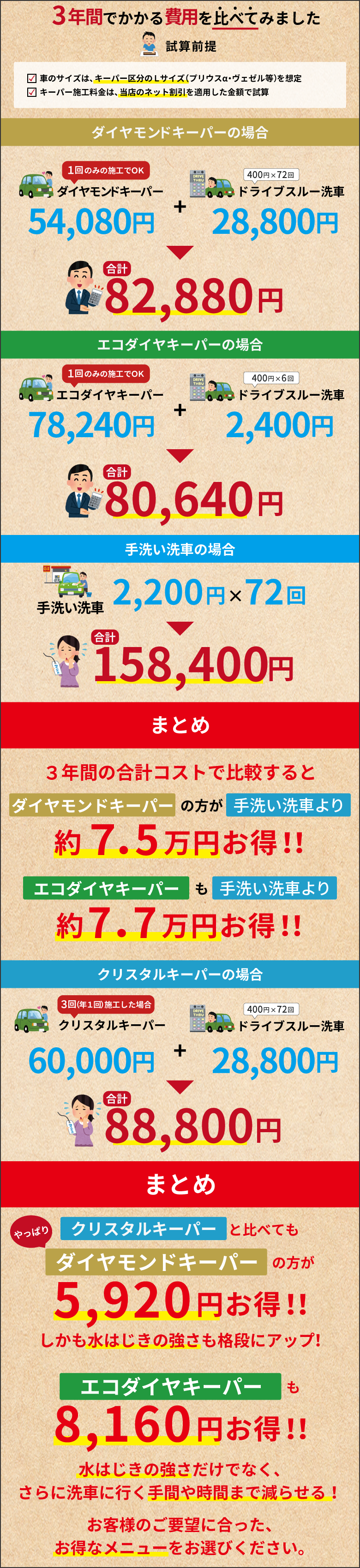 カーディーラーや車販売店のコーティング料金より断然お得!